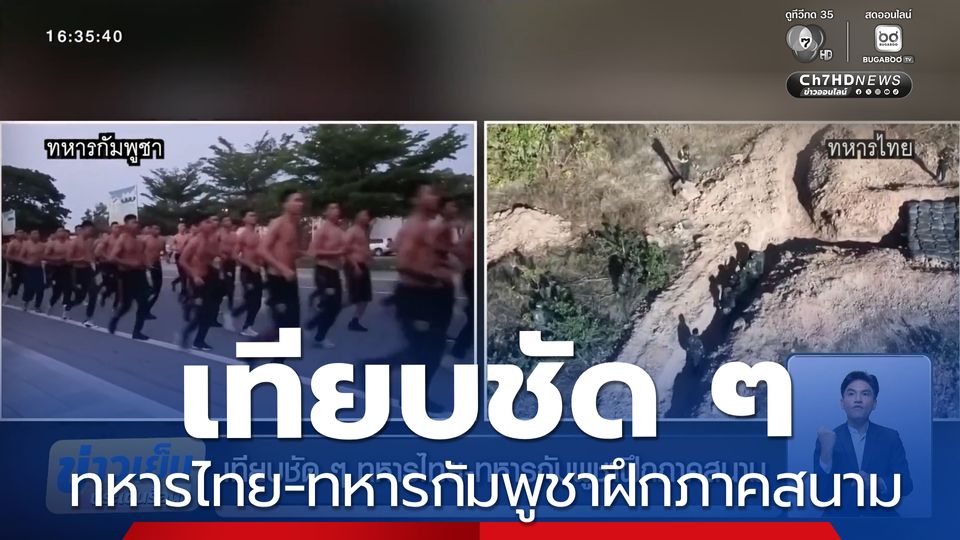 ข่าวเย็นประเด็นร้อน - ทหารกัมพูชา ฝึกทหารล็อตใหม่ ไม่พัก-ไม่ผ่อน เกณฑ์กำลังมาฝึกเรื่อย ๆ แต่ครั้งนี้ ทหารไทยได้เผยคลิปการฝึกเช่นกัน เดี๋ยวเทียบให้ดูชัด ๆ ความแข็งแกร่งของทหาร 2 ประเทศ