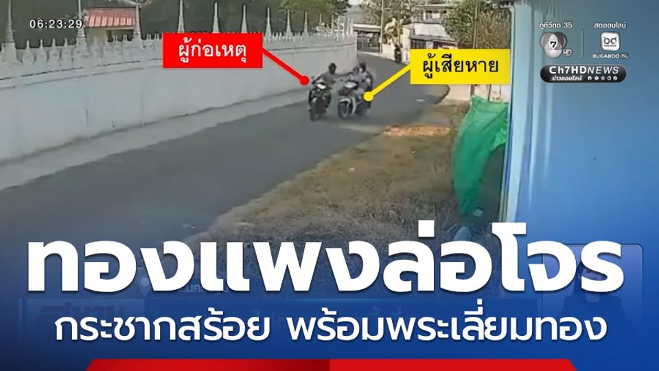 สนามข่าวเสาร์-อาทิตย์ - ราคาทองคำแพงเป็นเหตุ ทำเอาเกิดเหตุชิงทองรายวัน อย่างที่จังหวัดนครปฐม คนร้ายขี่รถจักรยานยนต์ตามประกบ ก่อนกระชากสร้อยทอง 2 สลึง พร้อมพระเลี่ยมทอง หลบหนีไป