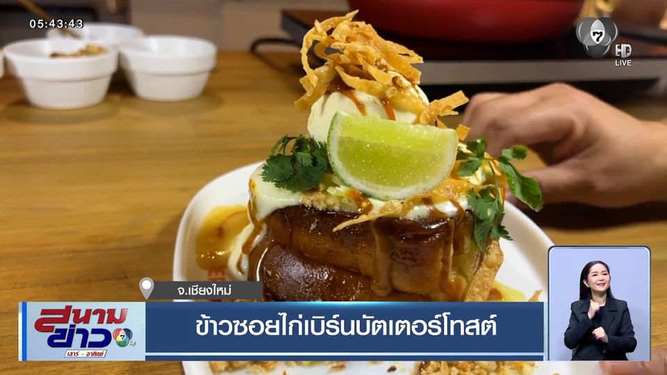สนามข่าว เสาร์-อาทิตย์ - ไปที่จังหวัดเชียงใหม่ เมนูข้าวซอย ใครเคยกิน แต่คราวนี้ไม่ใช่ข้าวซอยแบบที่เคยเห็นทั่วไป แต่เป็น "ข้าวซอยไก่เบิร์นบัตเตอร์โทสต์"