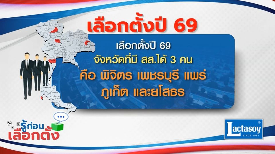 รู้ก่อนเลือกตั้ง 2569 : เลือกตั้งปี 69 จังหวัดที่มี สส.ได้ 3 คน คือพิจิตร เพชรบุรี แพร่ ภูเก็ต และยโสธร