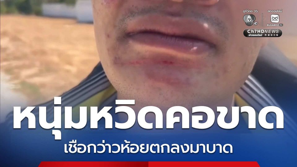 ข่าวเด็ด 7 สี - เกิดขึ้นอีกแล้ว ชายขี่รถจักรยานยนต์มากับแฟน โดนเชือกว่าวบาดคอ ได้รับบาดเจ็บ