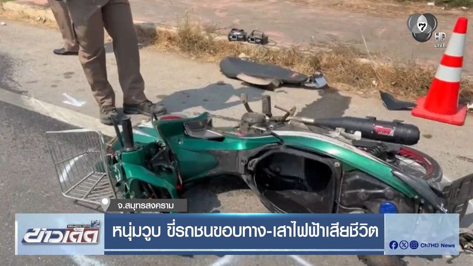 ข่าวเด็ดภาคดึก - เกิดอุบัติเหตุรถจักรยานยนต์เสียหลักชนขอบทางเท้า คนขี่กระเด็นฟาดเสาไฟฟ้าเสียชีวิตในที่เกิดเหตุ