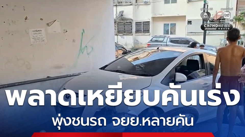 กล้องวงจรปิดบันทึกภาพ รถเก๋งขับออกจากช่องจอด ขณะเลี้ยว จู่ ๆ ก็พุ่งไปชนรถจักรยานยนต์จอดหน้าอาคารพังเสียหายหลายคัน เหตุเกิดภายในหมู่บ้านเอื้ออาทร ตำบลในคลองบางปลากด อำเภอพระสมุทรเจดีย์ จังหวัดสมุทรปราการ บริเวณทางขึ้นบันไดอาคารพบรถเก๋ง จอดเกยกับขอบปูนทางขึ้นชนอัดติดกับรถจักรยานยนต์พังเสียหาย พบรถจักยานยนต์ล้มพังเสียหาย 4 คัน รวมรถจักรยานยนต์ที่ถูกชนทั้งหมด 6 คัน