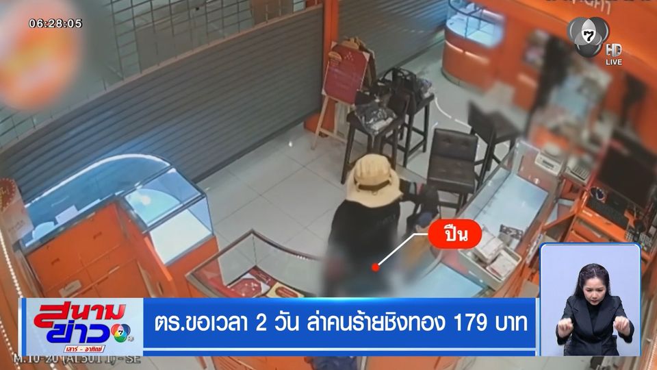 สนามข่าวเสาร์-อาทิตย์ - ตำรวจพอจะรู้ตัวคนร้ายชิงทอง ที่คาดว่าได้ไปกว่า 179 บาท และคว้าเงินสดอีก 170,000 บาท ติดมือไปด้วย ขอเวลาไม่เกิน 2 วัน จับตัวได้แน่