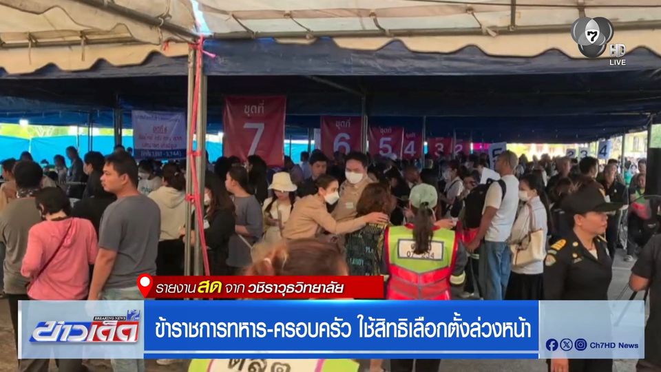 ข่าวเด็ด 7 สี - ส่วนหน่วยเลือกตั้งล่วงหน้า เขต 1 กรุงเทพ มีครอบครัวข้าราชการทหาร เข้าใช้สิทธิ์เป็นจำนวนมาก ติดตามกับ คุณพิธพงษ์ รายงานสดจากภายในวชิราวุธวิทยาลัย