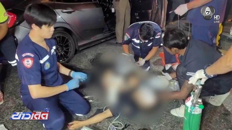 กู้ภัยเร่งช่วยเหลือทำ CPR ให้ สิบตำรวจเอก สุทธิวุฒิ หอกลาง ผู้บังคับหมู่ตรวจคนเข้าเมือง จังหวัดอุดรธานี ถูกมีดปลายแหลมแทงที่ชายโครงข้างขวา อาการสาหัส ก่อนนำส่งโรงพยาบาล เหตุเกิดบนถนนสุขุมวิทใกล้สถานีรถไฟฟ้า BTS ช้างเอราวัณ จังหวัดสมุทรปราการ จุดเกิดเหตุพบรถยนต์ของผู้บาดเจ็บ จอดเปิดประตูขวาอยู่บนถนน