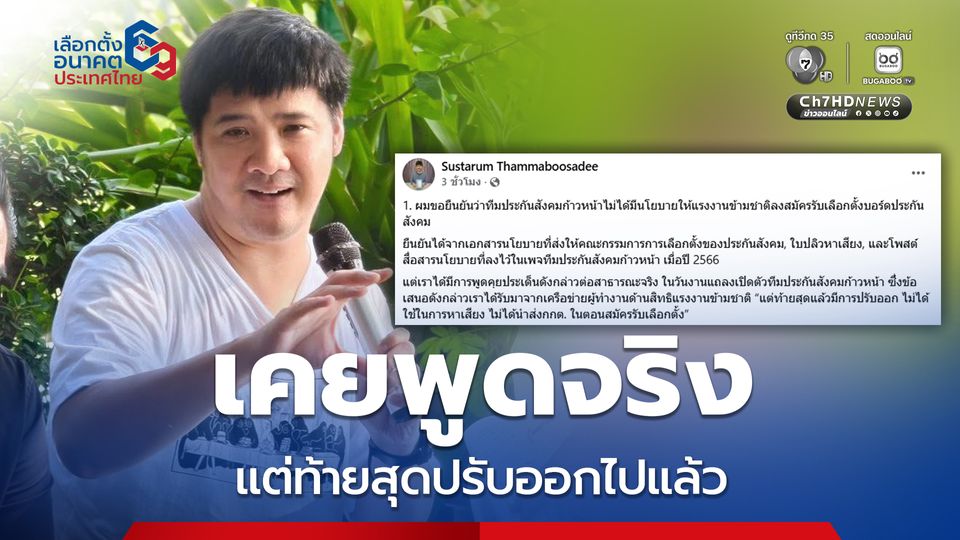 ษัษฐรัมย์ แจงทีมประกันสังคมก้าวหน้าไม่ได้มีนโยบายให้แรงงานข้ามชาติลงสมัครรับเลือกตั้งบอร์ดประกันสังคม ยอมรับมีการพูดต่อสาธารณะจริง แต่ท้ายสุดปรับออกไม่ได้นำส่ง กกต. อัดกลับ ภท. เสียงตกจนต้องโหนกระแสชาตินิยม