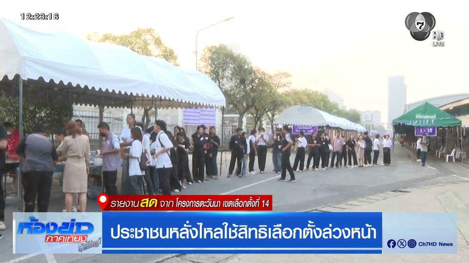 ห้องข่าวภาคเที่ยง สุดสัปดาห์ - ผ่านมาครึ่งวันแล้ว การเลือกตั้งล่วงหน้าที่เขตบางกะปิ ประชาชนก็ยังคงทยอยออกมาใช้สิทธิ์กันอย่างต่อเนื่อง ติดตามกับคุณกนิษฐา น่าชม