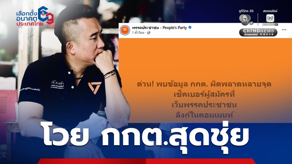 จรยุทธ์ โวยชื่อหายจากบอร์ดหน้าคูหาลงคะแนนโคราช จนท.บอกโดนตัดสิทธิไปแล้ว โวย กกต.ทำงานสุดชุ่ย จะรับผิดชอบอย่างไร ขณะที่พรรค ปชน. โพสต์หน้าเพจพบข้อมูล กกต. ผิดพลาดหลายจุด ขอให้เช็กเบอร์ผู้สมัครที่เว็บไซต์