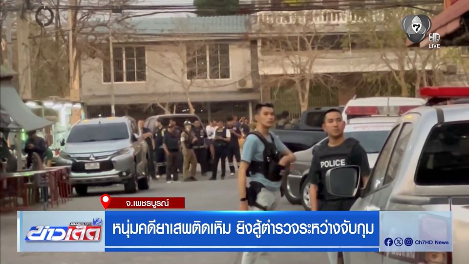 ข่าวเด็ด 7 สี - ระทึกกลางตลาดสด เมื่อ ตำรวจ ปปส. เข้าจับกุม หนุ่มคดียาเสพติดที่หลบซ่อนตัวภายในบ้านภรรยา ในอำเภอบึงสามพัน จังหวัดเพชรบูรณ์ แต่ขณะเข้าจับกุม กลับยิงต่อสู้เป็นเหตุให้ตำรวจ บาดเจ็บ 2 นาย