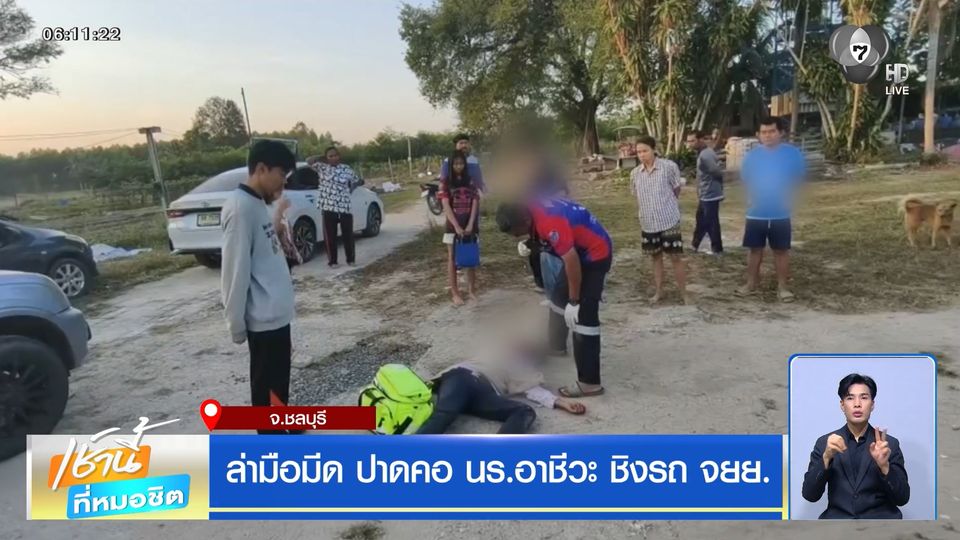 ฟังจากคำบอกเล่าของแม่ผู้บาดเจ็บคร่าว ๆ พอจะปะติดปะต่อเรื่องได้ว่า นายสิรภัทร อายุ 18 ปี ลูกชาย ที่เรียนในระดับอาชีวศึกษา ชั้นปี 3 ถูกคนร้ายถีบรถจักรยานยนต์ระหว่างทางกลับบ้าน ตำบลเขาไม้แก้ว อำเภอบางละมุง จังหวัดชลบุรี และใช้มีดพับปาดเข้าที่ลำคอ และบริเวณใบหูข้างขวา ก่อนจะชิงรถจักรยานยนต์หลบหนีไป