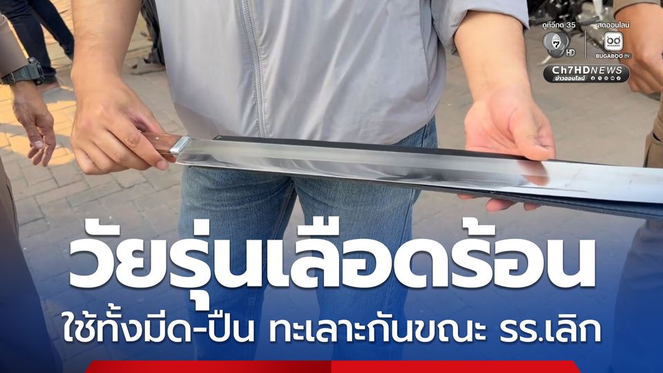วัยรุ่นทะเลาะวิวาท มีทั้งมีด ทั้งปืน ยิงเข้าใส่ลานจอดรถโรงเรียน ขณะที่ นักเรียนจำนวนมากกำลังเลิกเรียนวิ่งหนีอลหม่าน คู่กรณีคนยิง เผย มีปากเสียงกับกลุ่มคู่อริ เห็นอีกฝ่ายทำท่าจะหยิบสิ่งของบาง จึงคว้ามีดเล่มใหญ่วิ่งเข้าไปหา ทำให้อีกฝ่ายชักอาวุธปืนออกมายิง 1 นัด จากนั้นแยกย้ายหลบหนี