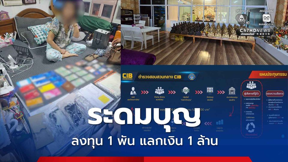 รวบขบวนการระดมเงินบุญ ลงทุน 1,000 แลกเงิน 1 ล้าน พุ่งเป้าลวงคนวัยเกษียณ สูญเสียเงินเก็บบั้นปลายชีวิต โอนซ้ำเพราะเสียดายเงินที่ลงทุนไปแล้ว ขบวนการนี้มีเงินหมุนเวียนกว่า 600 ล้าน