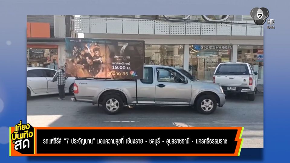 เที่ยงบันเทิงสด - ซีรีส์เรื่องใหม่ 7 ประจัญบาน กำลังจะลงจอให้ได้ชมในวันพฤหัสบดีนี้แล้ว เมื่อวันก่อนมีขบวนรถแห่ชวนดูความสนุกออกโพรโมตกระจายความสุขให้แฟน ๆ ที่จังหวัดเชียงราย ชลบุรี อุบลราชธานี และนครศรีธรรมราช ได้รับความสนใจจากแฟน ๆ ในทุกที่ ๆ ไป