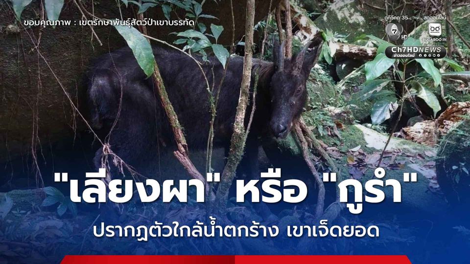 “เลียงผา” หรือ “กูรำ” สัตว์ป่าสงวนหายาก ปรากฏตัวบริเวณน้ำตกร้าง เขาเจ็ดยอด เขตรักษาพันธุ์สัตว์ป่าเขาบรรทัด สะท้อนถึงความอุดมสมบูรณ์ของระบบนิเวศในพื้นที่