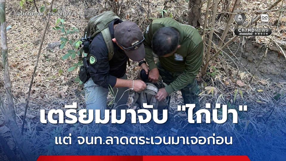 เจ้าหน้าที่อุทยานแห่งชาติเอราวัณ ออกลาดตระเวนพบชายเตรียมมาลักลอบล่า “ไก่ป่า” ในอุทยานแห่งชาติฯ พบครืนดักไก่ป่า 60 อัน และลำโพง 1 เครื่อง เจ้าตัวเผยยังไปทันจับไก่ เจ้าหน้าที่ก็มาเจอตัวเสียก่อน