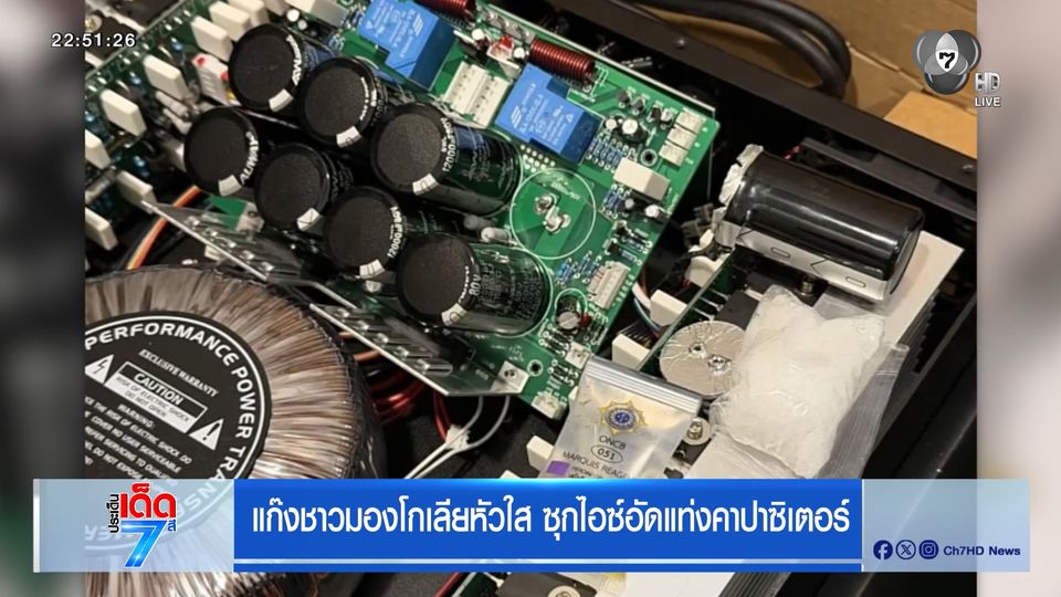 ประเด็นเด็ด 7 สี - ตำรวจปราบปรามยาเสพติด รวบหนุ่มต่างชาตินักประดิษฐ์ ซุกไอซ์อัดแท่งใน คาปาซิเตอร์ หรือตัวเก็บประจุไฟฟ้า