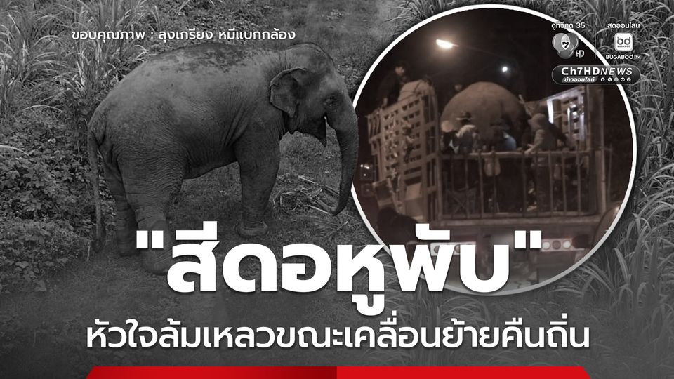 เจ้าหน้าที่ระดมกำลัง 200 นาย ยิงยาซึม "สีดอหูพับ" ช้างป่าที่ทำร้ายชาวบ้านตาย 2 คน เพื่อเคลื่อนย้ายคืนถิ่น แต่ระหว่างทางเกิดเหตุสลดเมื่อช้างได้เกิดอาการชักจนล้ม คาดว่าเกิดจากหัวใจล้มเหลว
