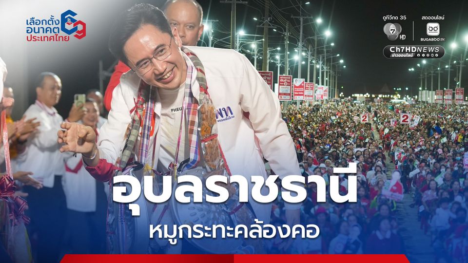 ค่ำวานนี้ (3 ก.พ.69) ชาวอุบลราชธานี แห่ฟังปราศรัยพรรคเพื่อไทยเวทีสุดท้าย ณ ปากห้วยวังนอง อ.เมือง คึกคัก พร้อมนำพวกมาลัยที่ทำมาจากกระทะ สำหรับย่างหมูกระทะ รวมถึงของกินขึ้นชื่อประจำถิ่นมาคล้องคอให้กับ ศ.ดร.ยศชนัน วงศ์สวัสดิ์ แคนดิเดตนายกรัฐมนตรี นายจุลพันธ์ อมรวิวัฒน์ หัวหน้าพรรคและแคนดิเดตนายกรัฐมนตรี นายณัฐวุฒิ ใสยเกื้อ ผู้ช่วยหาเสียง และแกนนำชุดใหญ่