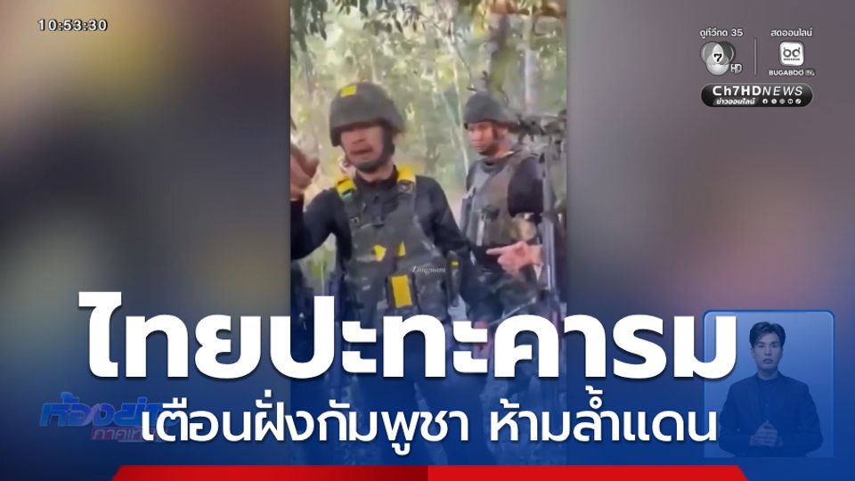 ห้องข่าวภาคเที่ยง - ชายแดนยังสงบ ไร้เหตุปะทะ แต่ไทยไม่ประมาท วางตู้คอนเทนเนอร์เสริมความมั่นคงชายแดน ปิดทางขึ้นช่องอานม้า ขณะที่ทหารไทย-กัมพูชา ยังคงมีการปะทะคารม เตือนฝั่งกัมพูชา ห้ามล้ำแดน
