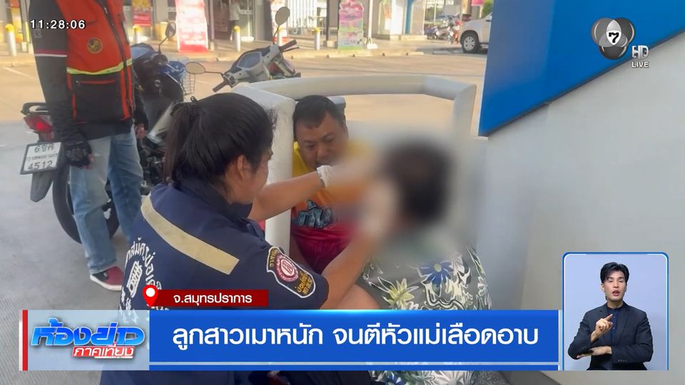 นี่เป็นสภาพของคนที่ชื่อได้ว่าเป็นแม่ ที่นั่งเลือดไหลอาบใบหน้ารอความช่วยเหลือ หลังลูกสาว อายุ 44 ปี มีอาการเมาหนักมาก จนเอาขวดตีแม่บาดเจ็บ เจ้าหน้าที่กู้ภัยมาช่วย พบว่ามีบาดแผลแตกที่กลางศีรษะและยังมีร่องรอยเล็บจิก เหตุเกิดช่วงเย็นวานนี้ (3 ก.พ.) หน้าปั้มน้ำมันแห่งหนึ่ง ริมถนนเทพรัตน์ ตำบลบางโฉลง อำเภอบางพลี จังหวัดสมุทรปราการ