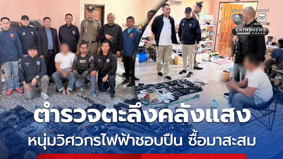 ตำรวจบุกค้นบ้านหนุ่มวิศวกรไฟฟ้า ตะลึงคลังแสงอาวุธปืน ทั้งปืนไทยประดิษฐ์ และสิ่งเทียมอาวุธปืน เครื่องกระสุนอีกเพียบ สารภาพชอบปืน สั่งซื้อทางออนไลน์มาประกอบเอง สะสมไว้โชว์ภายในบ้าน