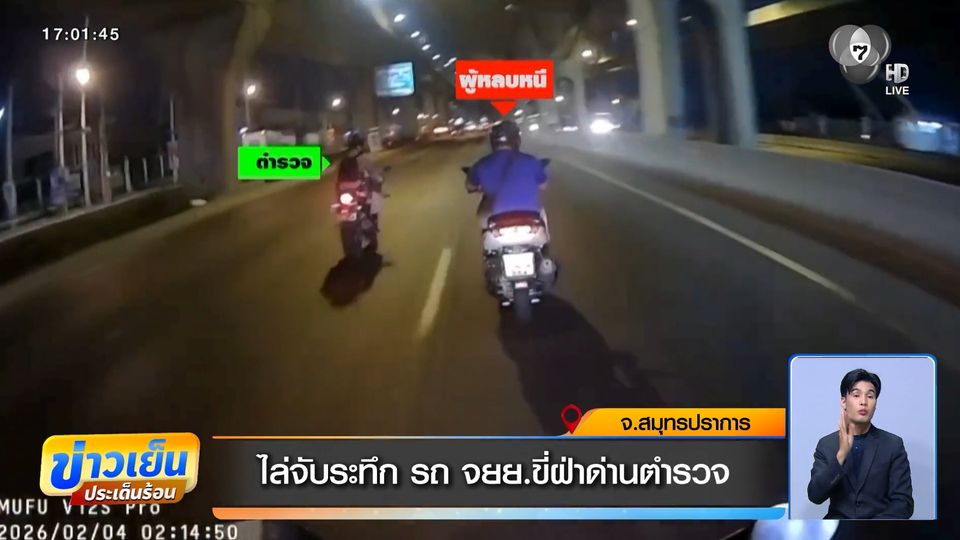 ข่าวเย็นประเด็นร้อน - ตำรวจไล่จับชายหนุ่มขี่รถจักรยานยนต์ฝ่าด่าน หวังหลบหนี สุดท้าย จวนตัวหักรถชนขอบทางกั้นเส้นทาง บาดเจ็บ