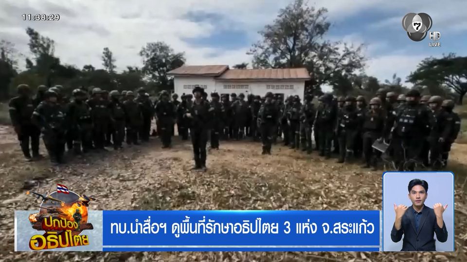 ห้องข่าวภาคเที่ยง - กองทัพบก เปิดพื้นที่ชายแดนสระแก้ว นำสื่อมวลชนติดตามภารกิจจริงกองกำลังบูรพา จังหวัดสระแก้ว พร้อมเดินหน้าปกป้องอธิปไตยไทยเต็มกำลัง หลังนำพื้นที่สำคัญอของไทยกลับมาได้ครบทั้ง 3 จุด