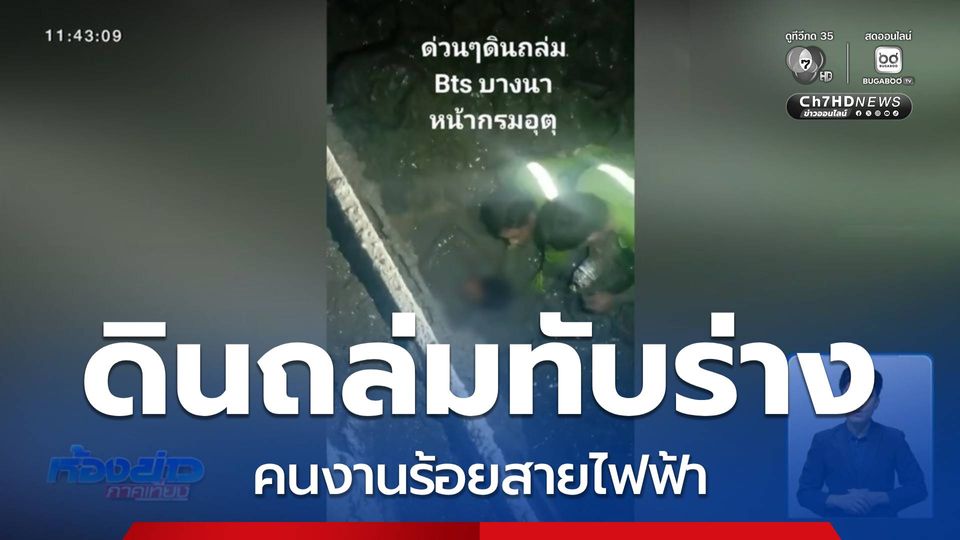 เพื่อนคนงาน เร่งช่วยชีวิต นายวีอาเล ปี คนงานชาวเมียนมา ซึ่งหมดสติหลัง ถูกดินไหลทับร่างมิดเกือบทั้งตัว เหตุเกิดภายในอุโมงค์สายส่งไฟฟ้าใต้ดิน บริเวณสถานีรถไฟฟ้า BTS บางนา ถนนสุขุมวิท เขตบางนา ความลึก 10 เมตร