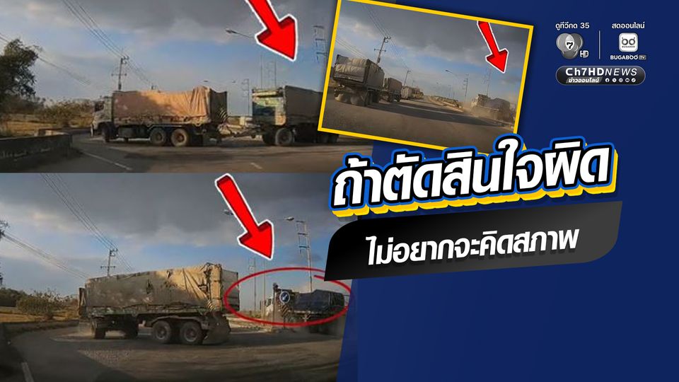 ถ้าตัดสินใจผิด ไม่อยากคิดสภาพ กล้องหน้ารถบันทึกเหตุการณ์ระทึกสุดหวาดเสียว พี่ใหญ่สิงห์รถบรรทุก ขับรถบรรทุกพ่วงกลับรถตัดหน้า มีรถบรรทุกพ่วงมาทางตรงไม่ได้ระยะเบรก ต้องเบี่ยงหลบจุดกลับรถ ย้อนศรไปฝั่งตรงข้าม โชคดีไม่เกิดอุบัติเหตุ