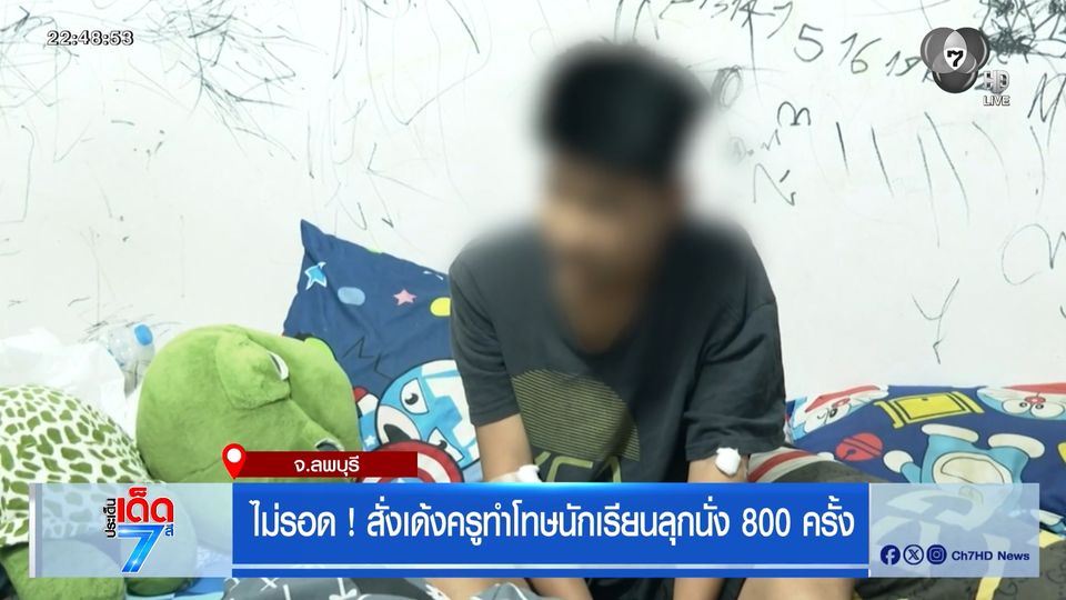 เรียกได้ว่าสภาพของเด็กชายอายุ 14 ปี ที่ถูกครูสาว ในโรงเรียนแห่งหนึ่ง ใน อำเภอหนองม่วง จังหวัดลพบุรี สั่งทำโทษด้วยการลุกนั่ง 800 ครั้ง เพราะไม่แก้งาน 5 วิชาในโรงเรียน ตอนนี้ยังเดินด้วยตัวเองไม่ได้ เนื่องจากกล้ามเนื้อขายังอักเสบ-ฉีกขาด
