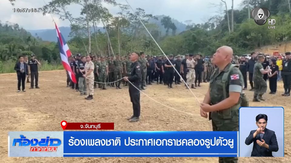 ห้องข่าวภาคเที่ยง - หน่วยทหารและภาคเอกชน ร่วมร้องเพลงชาติไทย ชักธงสู่ยอดเสา ประกาศเอกราชเขตอธิไตยของไทย บริเวณคลองรูปตัวยู ชายแดนด้านจังหวัดจันทบุรี