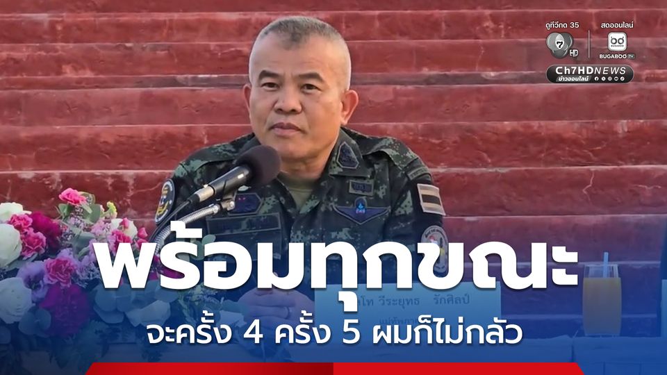 แม่ทัพภาคที่ 2 กล่าวถึงสถานการณ์ชายแดนไทย-กัมพูชา ลั่นไม่เคยกลัว ทหารทัพภาค 2 พร้อมรบตลอดเวลา จะครั้งที่ 3 ,4 หรือ 5 ก็ต้องปกป้องผืนแผ่นดินไทย