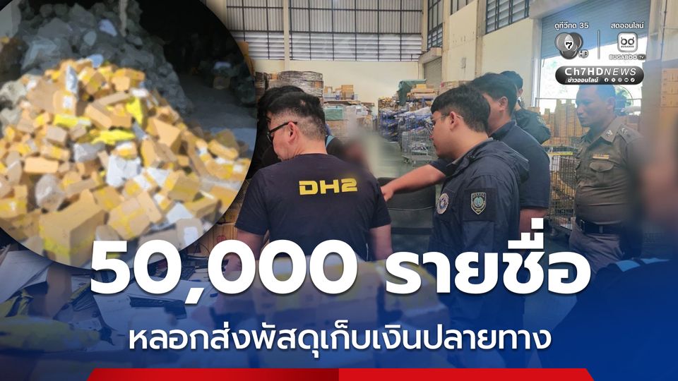 ตำรวจ ภ.1 บุกทลายโกดังพักพัสดุ ของขบวนการหลอกส่งพัสดุเก็บเงินปลายทาง พบพัสดุเก่าเตรียมจ่าหน้าผู้รับใหม่กว่า 50,000 ชิ้น