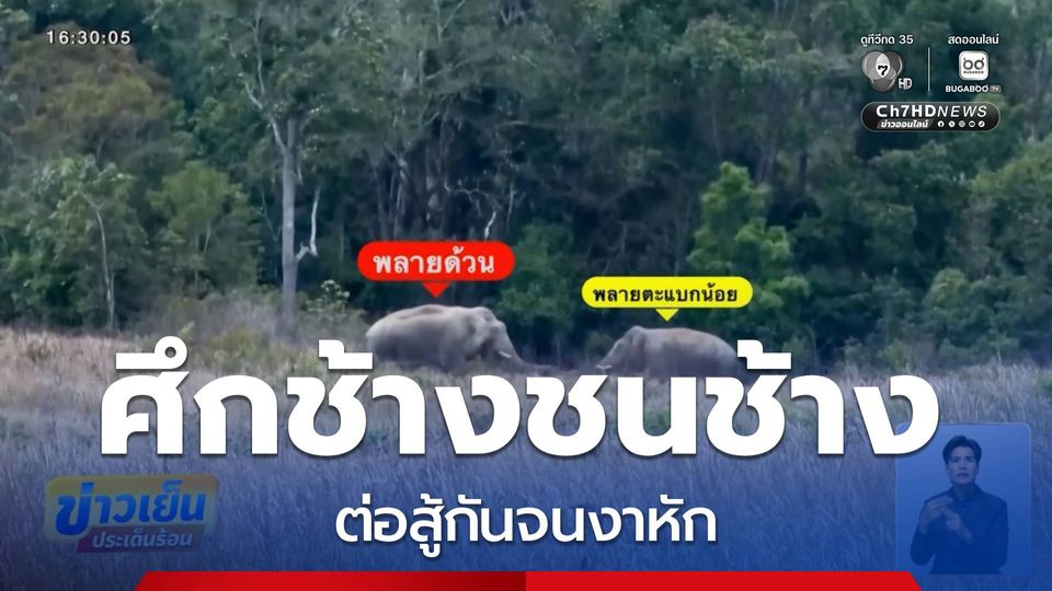 ศึก "ช้างชนช้าง" เป็นช้างป่าเจ้าถิ่น ชนกับช้างน้อยอีกตัวที่พลัดเข้ามาในป่าเขาใหญ่ ต่อสู้กันจนงาหัก