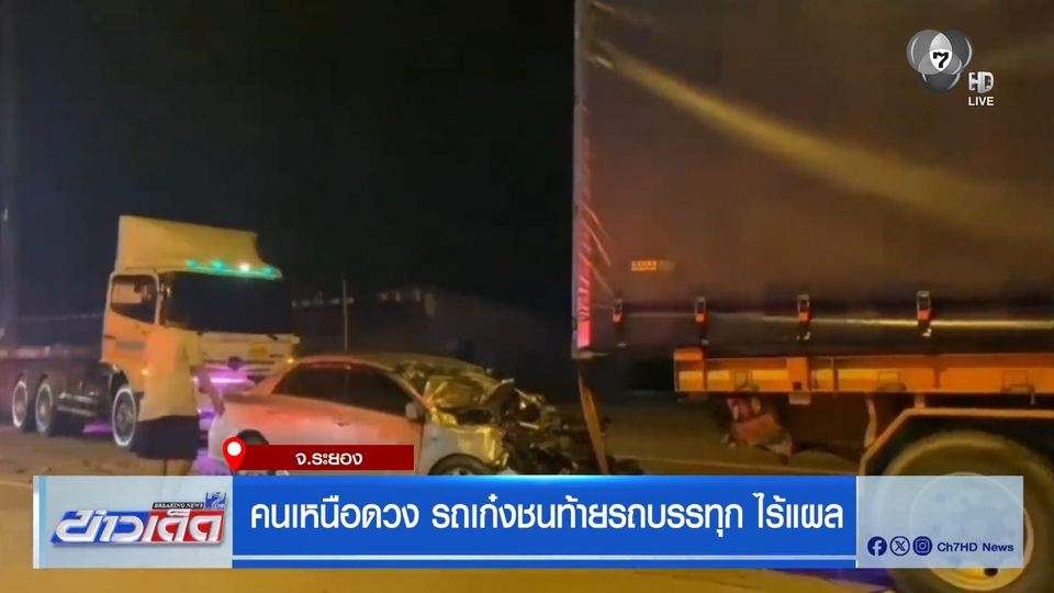 ข่าวเด็ด 7 สี - เหตุการณ์นี้ต้องบอกว่า ปาฏิหาริย์มีจริง! หนุ่มใหญ่นิคมพัฒนา ที่จังหวัดระยอง ประสบอุบัติเหตุ รถเสียหลักไปพุ่งชนท้ายรถเทรลเลอร์ จนรถพังยับ หลายคนเห็นสภาพรถแล้ว บอกว่าไม่น่ารอด