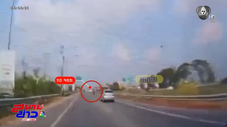 กล้องหน้ารถผู้ร่วมทางบันทึกภาพที่รถเก๋ง ขับพุ่งชนกับรถจักรยานยนต์ของไรเดอร์สาว ที่ขี่มาเลนฝั่งตรงข้าม ซึ่งเป็นถนน 2 เลนขับสวนทางกัน เหตุเกิดช่วงบ่ายวานนี้ (6 ก.พ.) บนถนนสายเอเชีย อำเภอบางปะอิน จังหวัดพระนครศรีอยุธยา