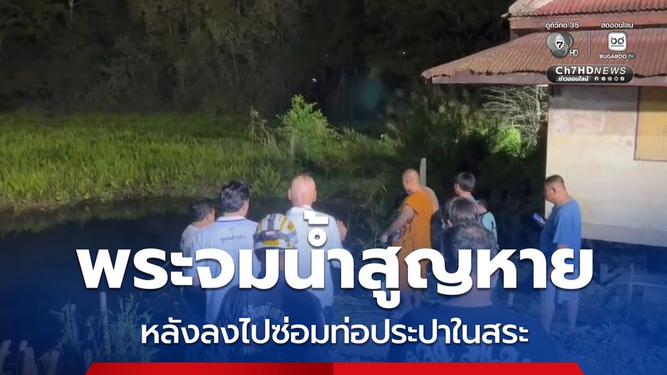 ที่ จ.อุทัยธานี เร่งค้นหาพระลงไปซ่อมท่อประปาในสระหลังวัด ก่อนจมน้ำสูญหาย