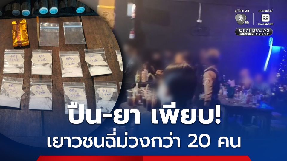 โดยจากการตรวจคัน พบวัยรุ่นชายหญิงจำนวนมาก กำลังดื่มกินเต้นอย่างสนุกสนาน จึงแสดงตัวขอตรวจค้นพบยาเสพติดทั้ง ไอซ์ ยาอี และโซแลม อาวุธปืนลูกซองยาวและกระสุน ตรวจปัสสาวะเยาวชนชายหญิงพบสีม่วงกว่า 20 คน จึงคุมตัวสอบสวนขยายผลดำเนินคดีตามกฎหมายต่อไป