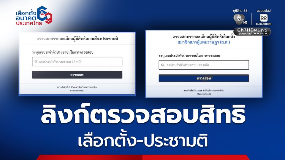 1️⃣ ตรวจสอบรายชื่อผู้มีสิทธิเลือกตั้ง และรายชื่อผู้มีสิทธิออกเสียงประชามติ