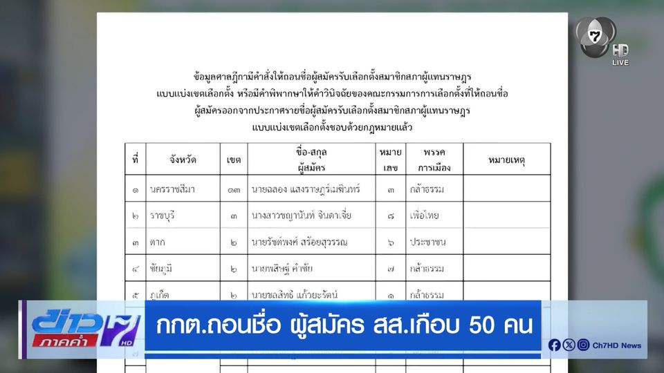 กกต.ถอนชื่อ ผู้สมัคร สส.เกือบ 50 คน