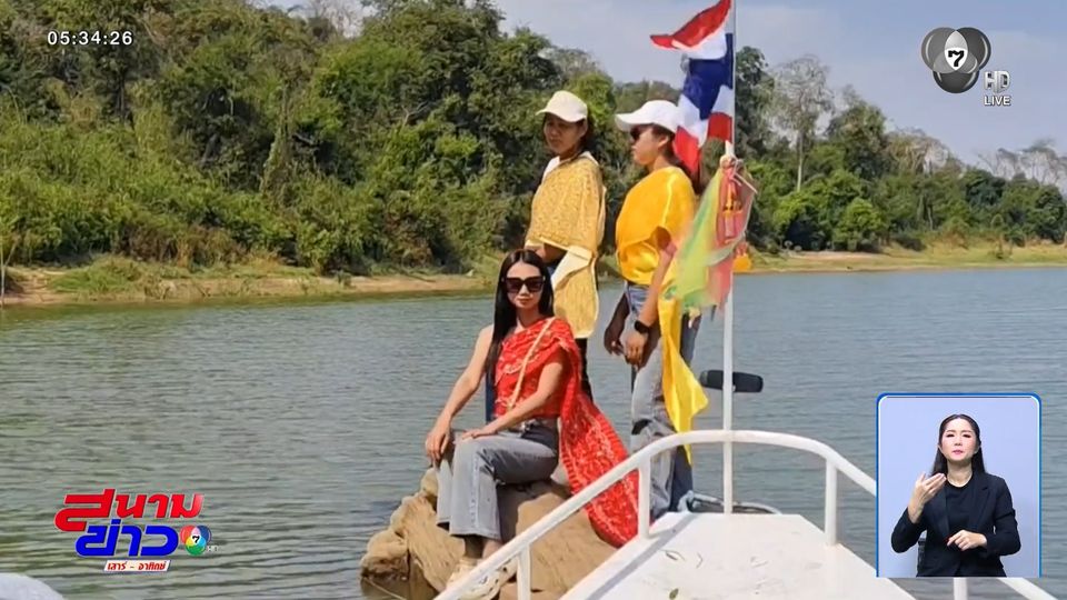 สนามข่าวเสาร์-อาทิตย์ - พาไปที่นครราชสีมา นักท่องเที่ยวแต่งตัวตามเทรนด์ "ห่มสไบใส่ยีนส์" ล่องเรือเที่ยวเขื่อนลำแชะ จังหวัดนครราชสีมา