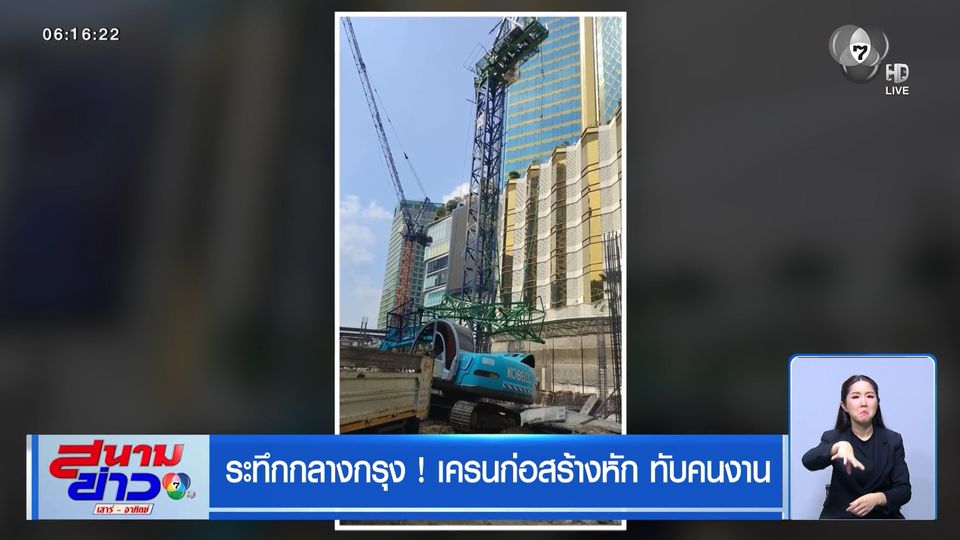 สนามข่าวเสาร์-อาทิตย์ - คนกรุงมีเรื่องให้หวาดเสียวเกือบทุกวัน เมื่อวาน เครนก่อสร้างอาคาร 5 ชั้น ใกล้แยกอโศกมนตรี พังถล่มลงมาทับคนงานก่อสร้าง บาดเจ็บสาหัส 2 คน