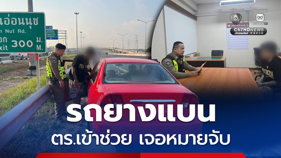 จอดเข้าไหล่ทางเพราะรถยางแบน ตร.หวังดีเข้าช่วย ท่าทีมีพิรุธ ตรวจสอบประวัติเจอหมายจับคดียา