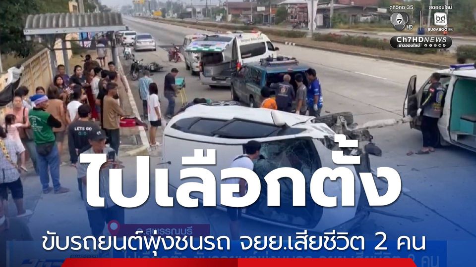 ข่าวเด็ด 7 สี - สลดใจ ชายขับรถยนต์ไปเลือกตั้ง ก้มหยิบโทรศัพท์มือถือ รถเสียหลักพุ่งชนรถจักรยานยนต์ มีผู้เสียชีวิต 2 คน