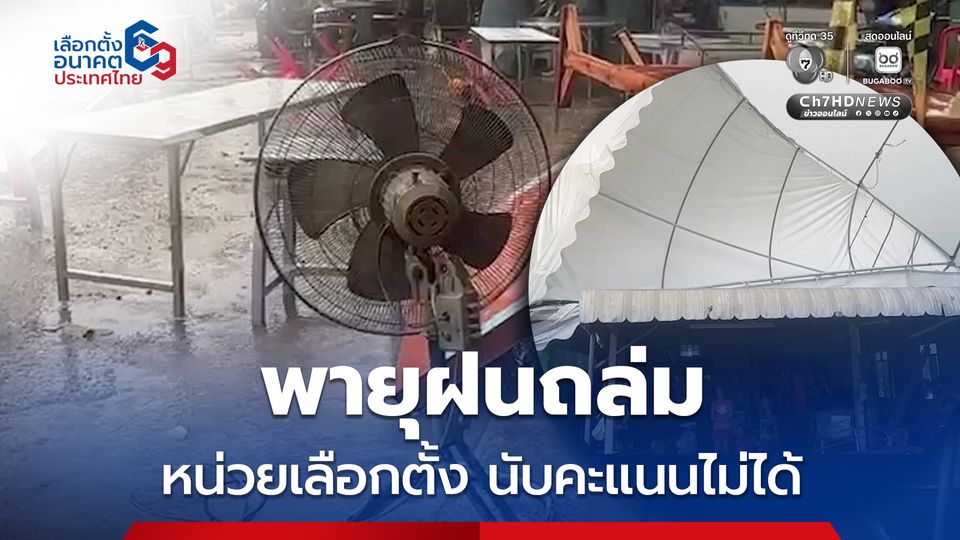 พร้อมมีชุดรักษาความปลอดภัยหมู่บ้าน คอยดูแลพื้นที่อย่างใกล้ชิด ต่อมาไม่นาน เต็นท์เลือกตั้งได้ถล่มลงมา ทับรถกระบะของคณะกรรมการประจำหน่วยเลือกตั้ง ส่งผลให้ป้ายผู้สมัคร ป้ายสำหรับนับคะแนน และเอกสารบางส่วนถูกฝนเปียกเสียหาย นอกจากนี้แรงลมยังพัดกระหน่ำจนหลังคาบ้านบริเวณใกล้เคียงได้รับความเสียหาย กระเบื้องหลังคาปลิวแตกหลุดจำนวนหนึ่ง