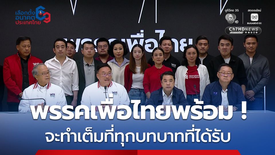 จุลพันธ์ อมรวิวัฒน์ หัวหน้าพรรคเพื่อไทย นำแถลงข่าว ขอบคุณทุกคะแนนเสียง เผย ในขณะนี้ถึงแม้การเลือกตั้ง จะยังคงอยู่ในช่วงนับคะแนน แต่ก็เห็นภาพที่ไม่เป็นทางการ พรรคเพื่อไทย กราบขอบพระคุณพี่น้องประชาชนทุกท่านที่ออกมาใช้สิทธิเลือกตั้ง กราบขอบพระคุณทุกคะแนนที่ให้กับพรรคเพื่อไทย ซึ่งเป็นกำลังใจที่จะเดินหน้าในการทำงานเพื่อพี่น้องประชาชนต่อไป พรรคเพื่อไทยยึดมั่นในระบอบประชาธิปไตย์ ระบอบรัฐสภา ก็คงเป็นหน้าที่ของพรรคที่ได้คะแนนเสียงมากที่สุด เดินหน้าจัดตั้งรัฐบาลต่อไป