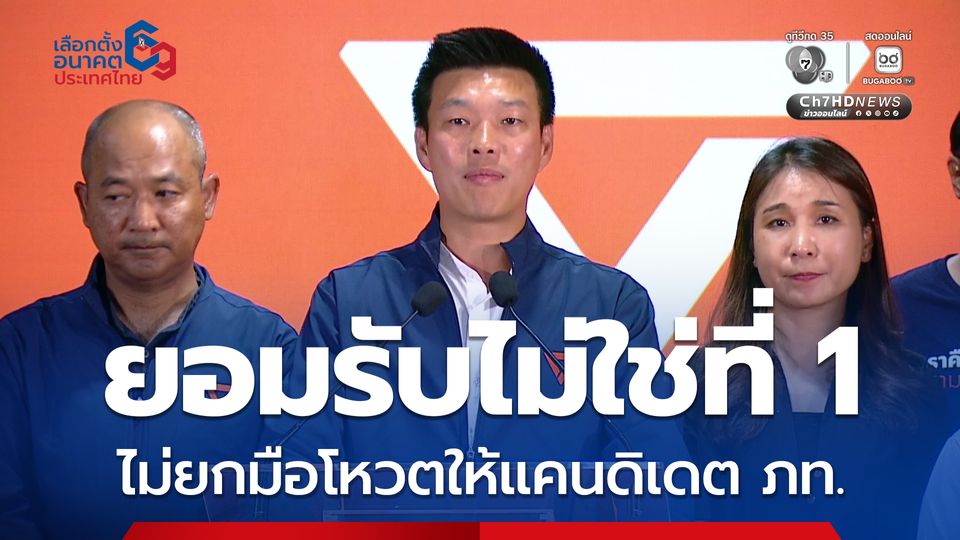 เท้ง ยอมรับผลการเลือกตั้ง ไม่ใช่พรรคอันดับ 1 ถ้า ภท. เป็นแกนนำจัดตั้งรัฐบาลได้ เราก็ต้องเป็นฝ่ายค้าน ประกาศแล้วไม่สามารถยกมือโหวตให้แคนดิเดตของ ภท.
