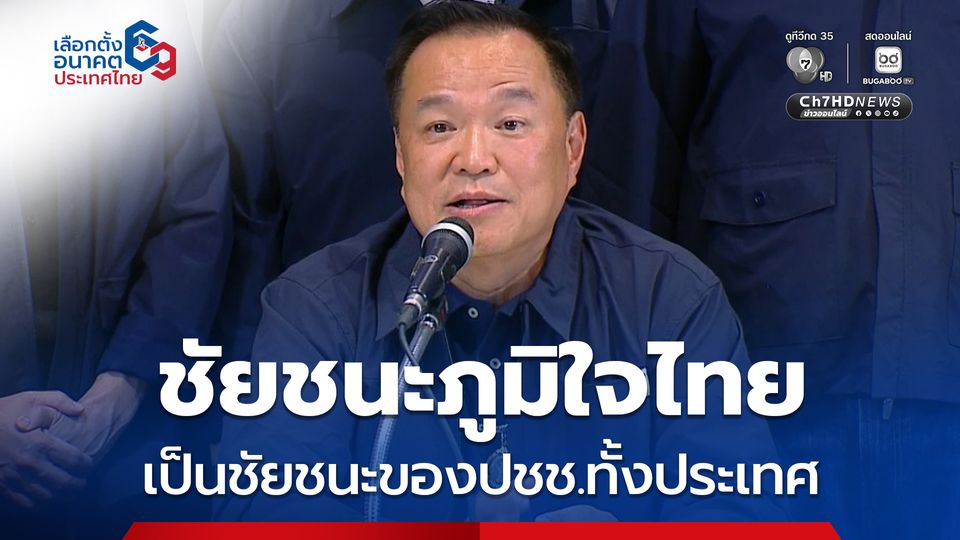 อนุทิน แถลงขอบคุณประชาชน ทุกเสียง ทุกคะแนน ภูมิใจไทย ชนะมาเป็นที่ 1 ยังไม่ตอบจับขั้วจัดตั้งรัฐบาล เอกนิติ-ศุภจี ขอบคุณประชาชน ยืนยันจะทำดีที่สุด