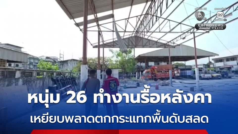 หนุ่มวัย 26 ปี ทำงานปีนขึ้นรื้อหลังคา เกิดเหยียบพลาดไปโดนโครงเหล็ก ทำให้ตกจากหลังคาสูง 5 เมตร กระแทกพื้นเสียชีวิตคาที่